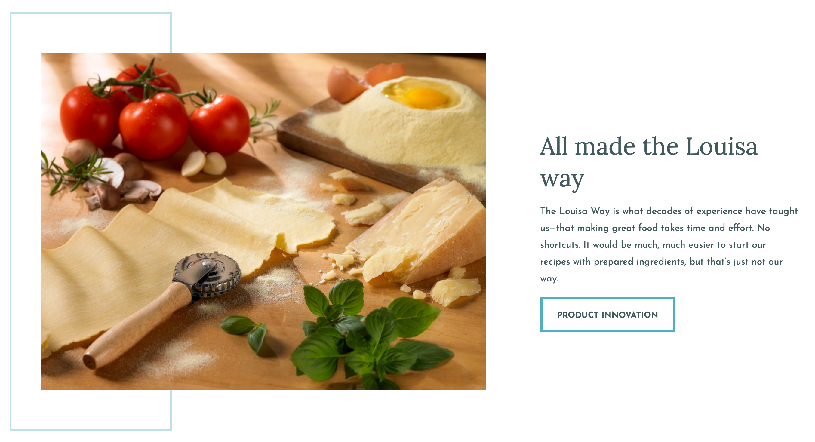 Much to my (and my wife’s) delight, my workstation was flooded with images of delicious food and pasta for the duration of the Louisa Foods build. The fun palette of images, content, and colors makes for an eye-catching and mouth-watering catalog.